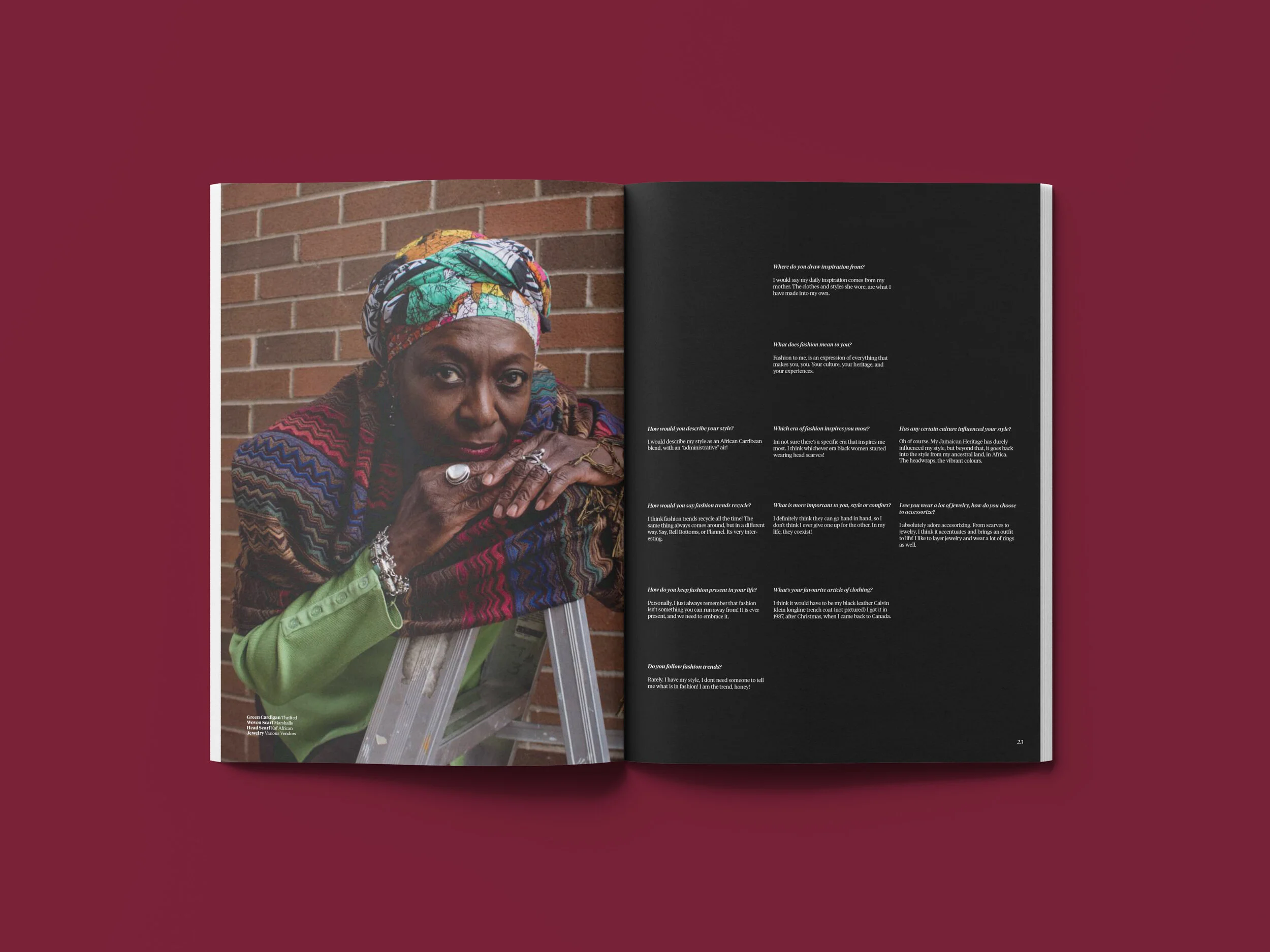Bread Magazine was born during my Editorial Design class, from my love of fashion, and my love of magazines. The name Bread stems from the phrase “Bread and Butter”, meaning something that is needed to live. I wanted to make a magazine that highlighted photography and typography, while using the work of artists of colour who depend on their creativity for a living.